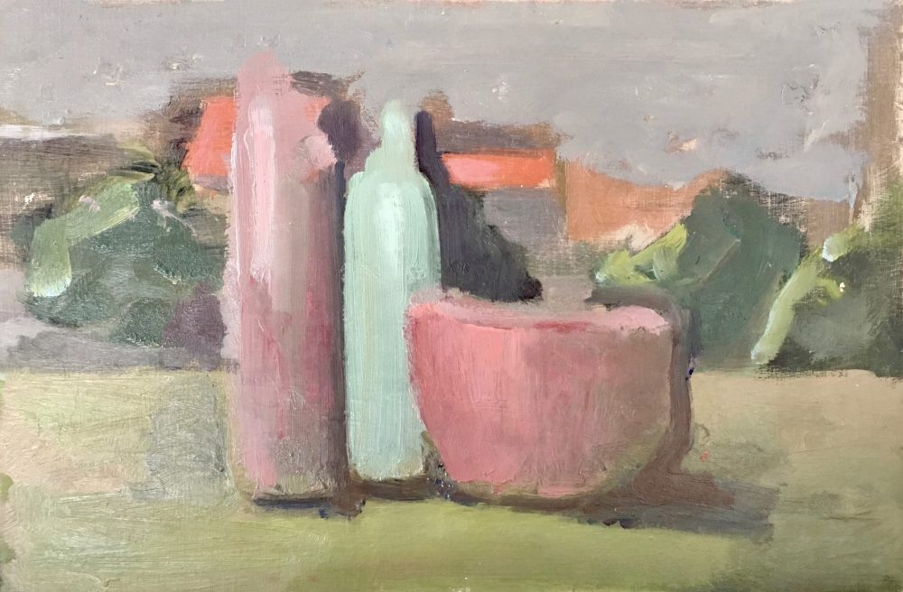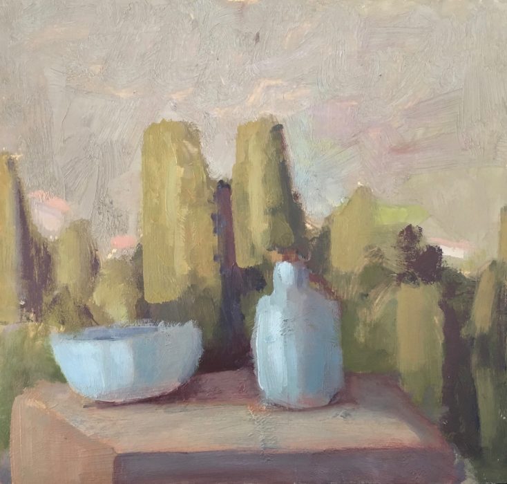The shapes, lines and colors present me with a challenge. More and more I realize that the painting is the result of a dialogue between me and what I see. Exploring the visual realms nourishes the drive to continue the search. The attempt to bring New Harmony on the canvas is like praying. The goal of my work is for me the process of painting itself. When I paint, I try to look at the world as if for the first time. It is the ground on which a different reality is build.