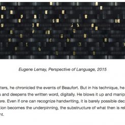 Eugene Lemay an American artist best known for his series Strata, Letters, and Navigator of large inkjet prints of rich landscapes which expose the root of written language as a metaphor for the human need to communicate.
