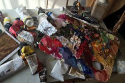 To achieve this goal, Assaf shatters the philosophical harmony of thought, leaving sections of his paintings bare and unfinished. He depends on his sharp painterly power and scatters hints that suffice to construct a world that is “similar” but restless.