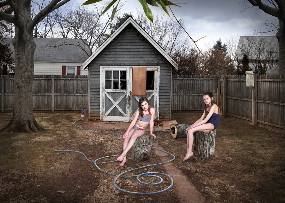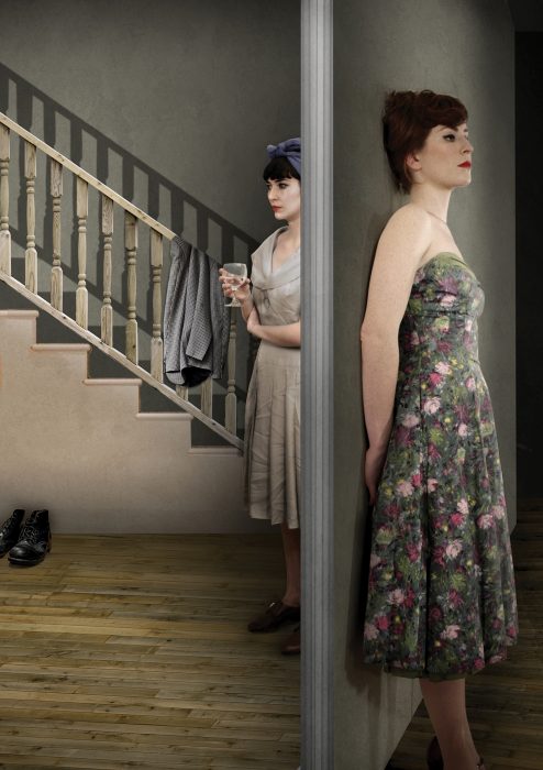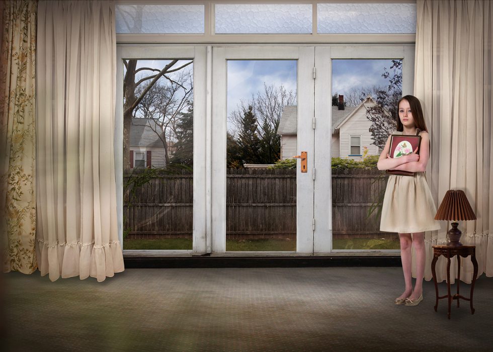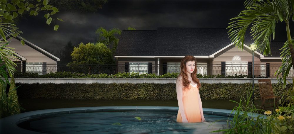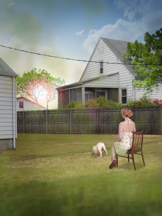The themes of her work are based around the illusiveness of normality. She is interested in the inherent contradiction in the need to belong to a social structure, but being simultaneously repulsed by it. She creates uncanny photomontages that are invented realities and feeds off the tension and dissonance created by staging mundane moments in life.