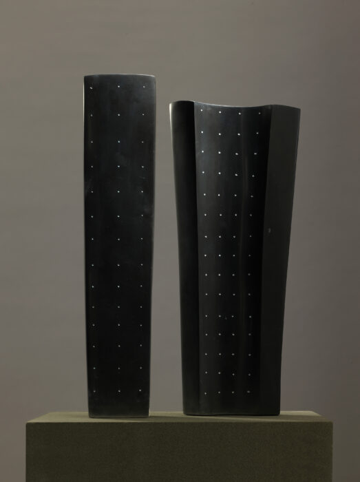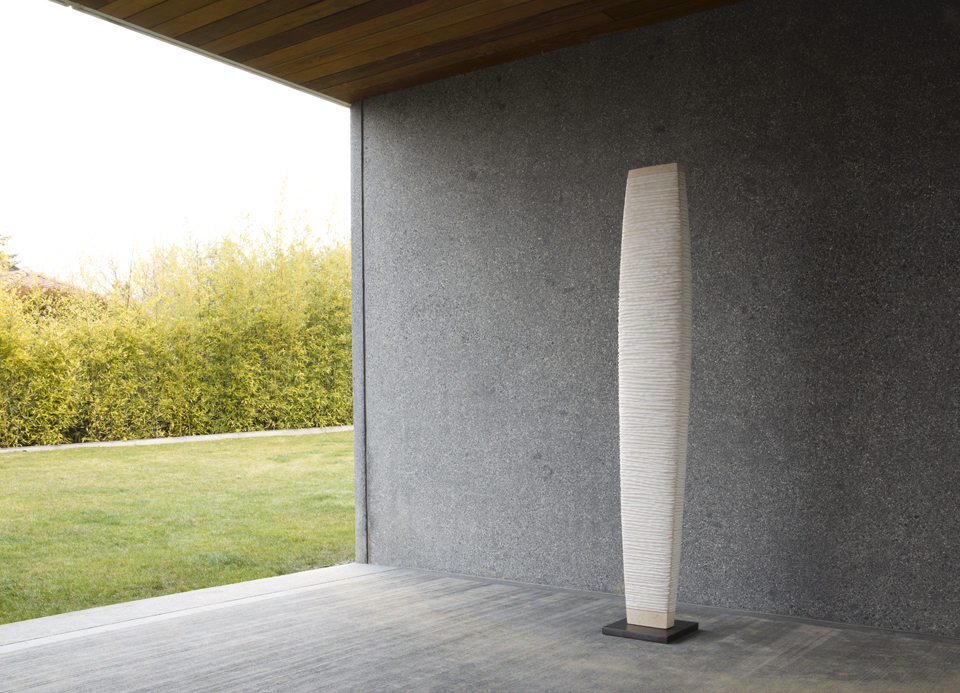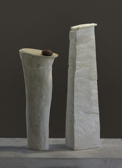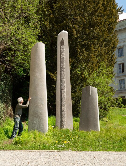 Yves Dana’s pieces exhibit a resounding grace with their simple lines and elegant form. After a long journey with iron as his medium and years of exploring other materials, Dana began to work with stone in 1998, following his visit to Egypt, his country of birth. He thus imports blocks of basalt from Sweden, Limestone from France and Turkey, serpentine from Italy and diabase from Germany. Inspired by the power and purity of Egyptian sculptures, Dana began his oneness with stone. In the midst of creating a more intense form of art through texture and speckled surfaces, he manages to not only recall his Egyptian roots but also convey his deep love for the material. His creative genius and drive to produce art is essentially reflective of his personal journey through time. The contrast within each piece, the shading, colours and textures capture the juxtaposition of life and light from one day to another. It can be noted that his powerful works bloom from an often athletic struggle with raw matter.