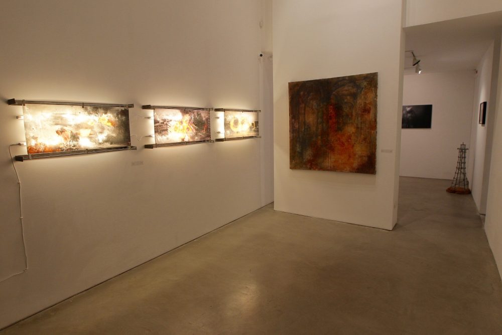 Famous Mayan calendar ends in 2012, What is the significance of this fragmentation? Is 2012 the year of a catastrophic loss and apocalypse? Is humanity moving toward a new consciousness? Consciousness of Cosmos? Dozens of books, films and magazines devoted to the subject. The exhibition presents works that deal with our relationship with theuniverse and the thick darkness enveloping humanity.