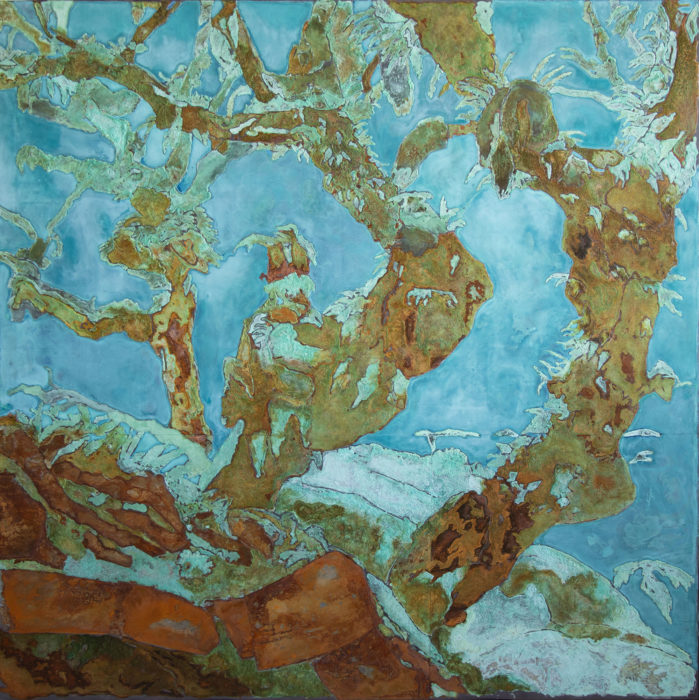 A modern-day alchemist, Piet van den Boog experiments with base metals like lead, copper, steel etc. form a grand visual allegory of personal transmutation and the quest for a cure for the human soul.