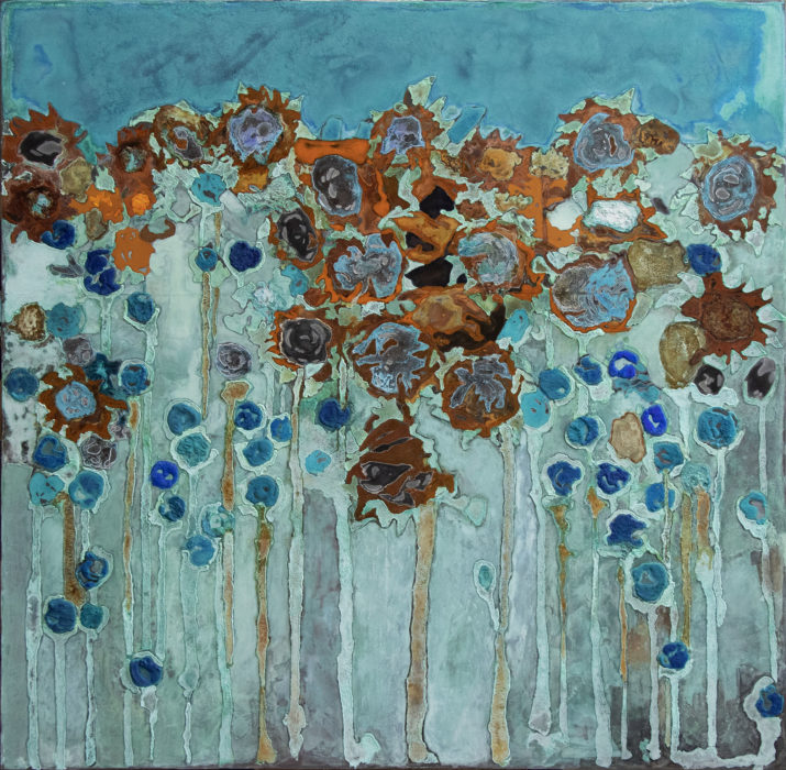 Van den Boog’s work is exciting and emotionally rich in that as viewers we participate in his process and feel transformed by it. He benefits from the uncontrollable nature of chemical action by way of accidents, which bring chaos to the organized mind.