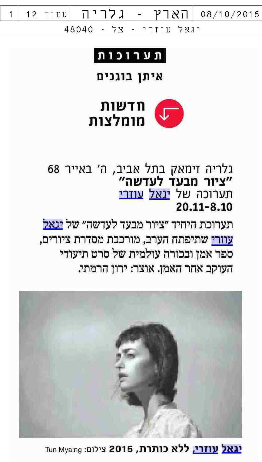 Ozeri will exhibit a series of new works alongside some of his most iconic pieces in recent years. The exhibition will be held in the entire space of the gallery and will be his biggest solo exhibition in an Israeli gallery so far. The exhibition will be accompanied by a new artist’s book and the world premier of a biographical documentary inviting the viewer into Ozeri’s studio.