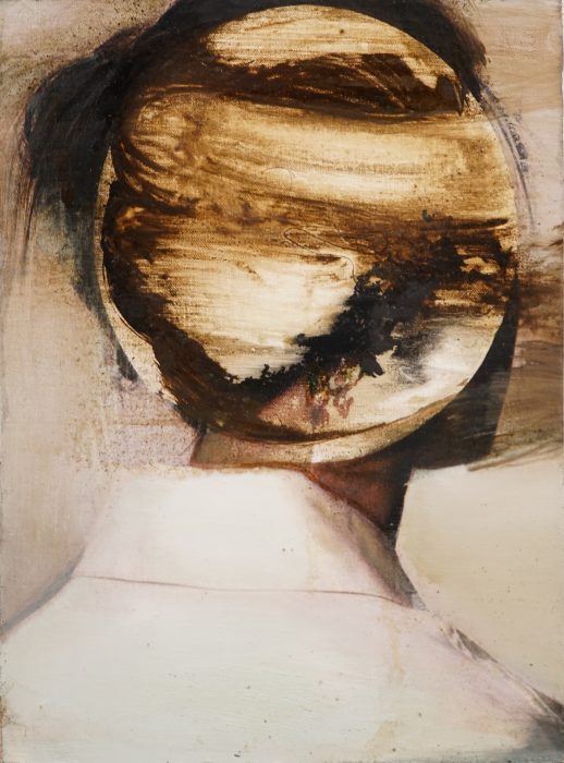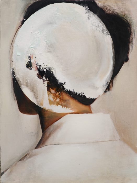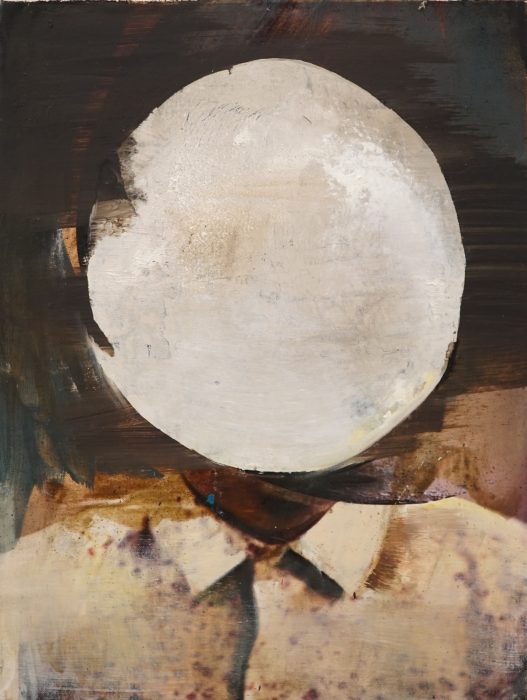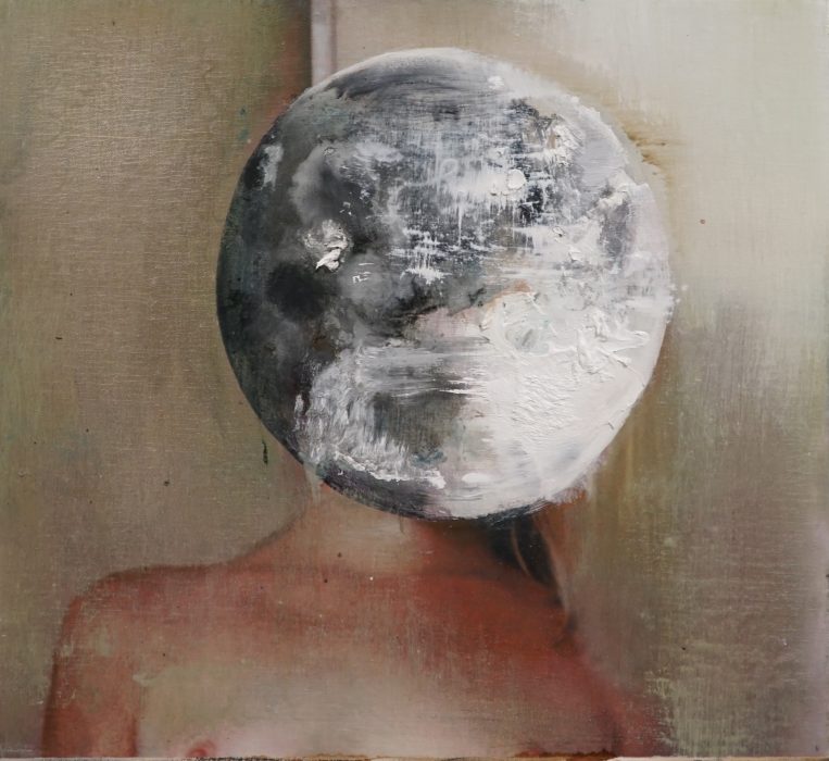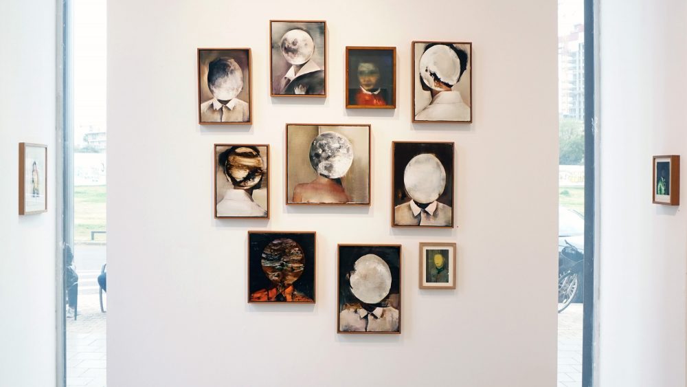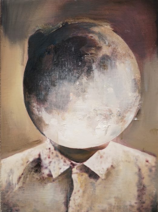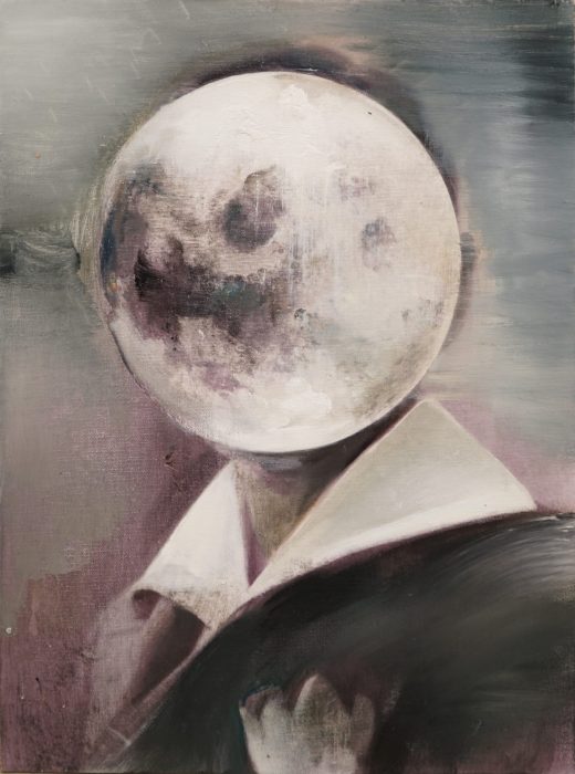 Prima Facie” is a juxtaposition of words that almost always assumes a continuation; it is a juxtaposition that is a revolving door that can always attack the assumption that “Prima Facie” assumes; my favorite translation of the expression “Prima Facie” into English is, “a legal term that indicates that something is completely clear, such that it can be assumed to be true until it is proven to be false”; I think about Assaf’s arrangement of portraits without faces, where the place of the face is taken by a round moon; prima facie, this is another brilliant disturbance, the hiding of subjectivity, of the referenced idea, of identity; a magnificent tradition of painting is thrown under the bus without a second thought. Can you believe it? Not really. Assaf paints a moon and a body that carries it; the subject of the painting, its many pieces are equal in my eyes; none of the pieces is more important than the other; and thus is created, a body with the face of a moon, or if you like, a moon with a body; the question that the painting asks (if it could) of the viewers is not “who is this?” but rather “what is this?” and that is already a deviation at the level of portraiture. So, this is the essence of “Prima Facie.” Period. And it is sublime, hidden, and clear as the moon, despite the fact that on its face it appears to conceal this essence; but who cares, we won’t reach it anyway until the age of 20.