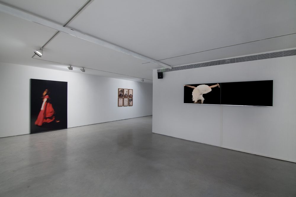 The exhibition covers the two levels of the gallery, using the space and its architecture as a tier that enhances the human narrative embodied in the videos and photographs. It is a site-specific installation that seeks to transform the space of the gallery into an arena of domestic events, which holds the familiar and menacing at the same time. The presence of Yanor’s women in these works is elusive; they look straight at the viewer, as though confiding in him at an intimate moment, a second before they fade into another existence, away from the tangible space of the gallery and the visitor’s mind.