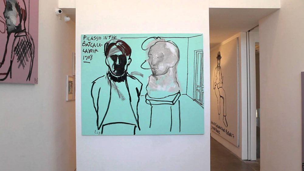 The series devoted to artists is perhaps the most transparent meditation on this theme. Much like a family gathering, there is a sense that Shakine is delving into a shared gene pool and exploring the affinities and contretemps that pervade familiar relations. A witty rejoinder to popular clichés about the majesty of the artistic process, these images expose the rarely seen fragility, isolation, and unceremonious conservation that goes hand in hand with aesthetic production. For instance, the existential bravado of Jackson Pollock’s drip paintings, largely formed by Hans Namuth’s portraits from 1951, is summarily dispelled. In place of an inexhaustible choreography, we witness Pollock stretching his tired, aching back. Likewise, the aura of conceptual genius with which Marcel Duchamp has been anointed is transformed into sheer happenstance as he ‘discovers’ the readymade during a visit to the men’s bathroom; Josef Alber’s Homage to the Square materializes not so much from Bauhaus techniques, principles, and aspirations, but more prosaically in the semblance of a bright, yolky egg cooked sunny side up; and Pablo Picasso’s Guernica would not have become an anti- Fascist cri de coeur without the artist having clean brushes at hand. The delib- erations continue: What are the chances that Andy Warhol would have become a poster boy for Pop Art had he been born in the Middle East? Do we have faith in Joseph Beuys’ claims for mystical communion with a dead hare or, for that matter, with his public? And how would post-war art in Britain have turned out if Gilbert Proesch and George Passmore had not met at the Saint Martin’s School of Art in 1967? In these comical speculations, Shakine earnestly ponders whether art is an outcome of ‘genius,’ as some myths would have us believe, or whether it emerges from fortuitous events, uncertain situations, and an incredible amount of strenuous labor that only becomes minted as ‘virtuosic’ in retrospect.