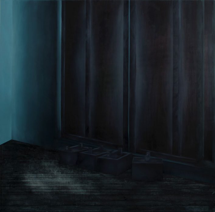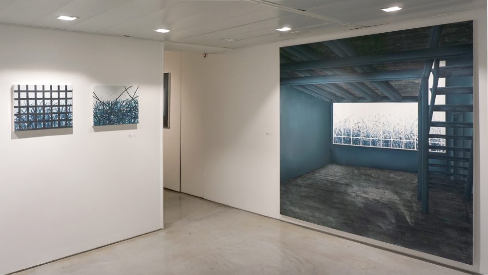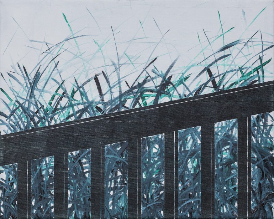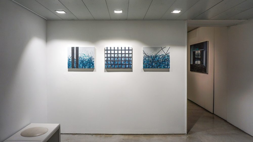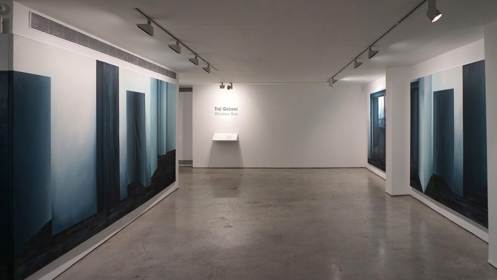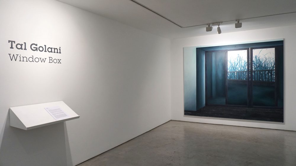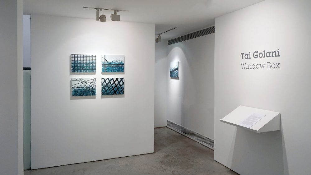In the same way that when examined close up, a continuous line is exposed as a collection of adjacent points, the exhibition at Zemack reveals that the installation is a sequence of interconnected drawings. Breaking down this sequence allows the reexamination and redefinition of the boundaries of the space, of the separation that supposedly exists between the outside and the inside. The paintings now become open windows to the depicted reality and not, as coined by Leonardo da Vinci, a window to reality. Moreover, the exhibition at Zemack includes a series of eight new works depicting plants. Tal Golani relates to these works as windows, and signals to us, the viewers, that the next stage of her journey goes outside the boundaries of the scene being observed: to the outside, to the organic, to an environment that is seemingly not designed by a human hand. However, the plants painted by Golani do not grow wild in nature. They are painted into planters; a small architectural structure that is also a buffer, separator, and divider. This structure attempts to dictate a borderline, that the structure will be forced to negotiate when the plant grows, when the painting spreads beyond the meticulous design of its creator.