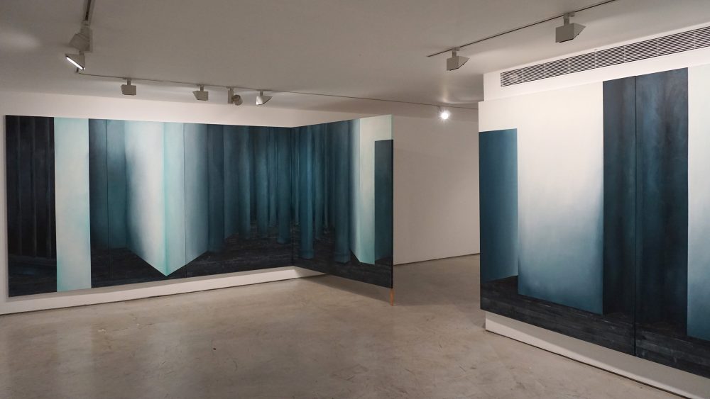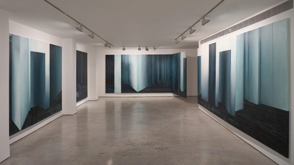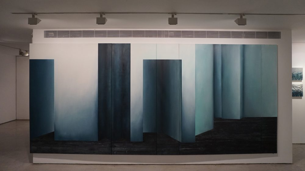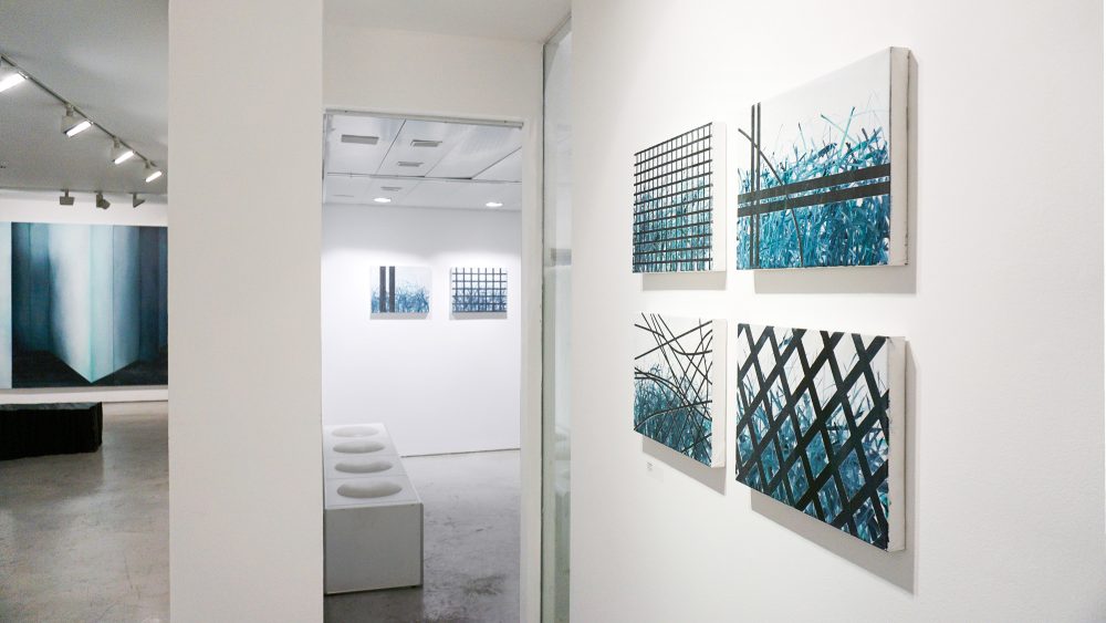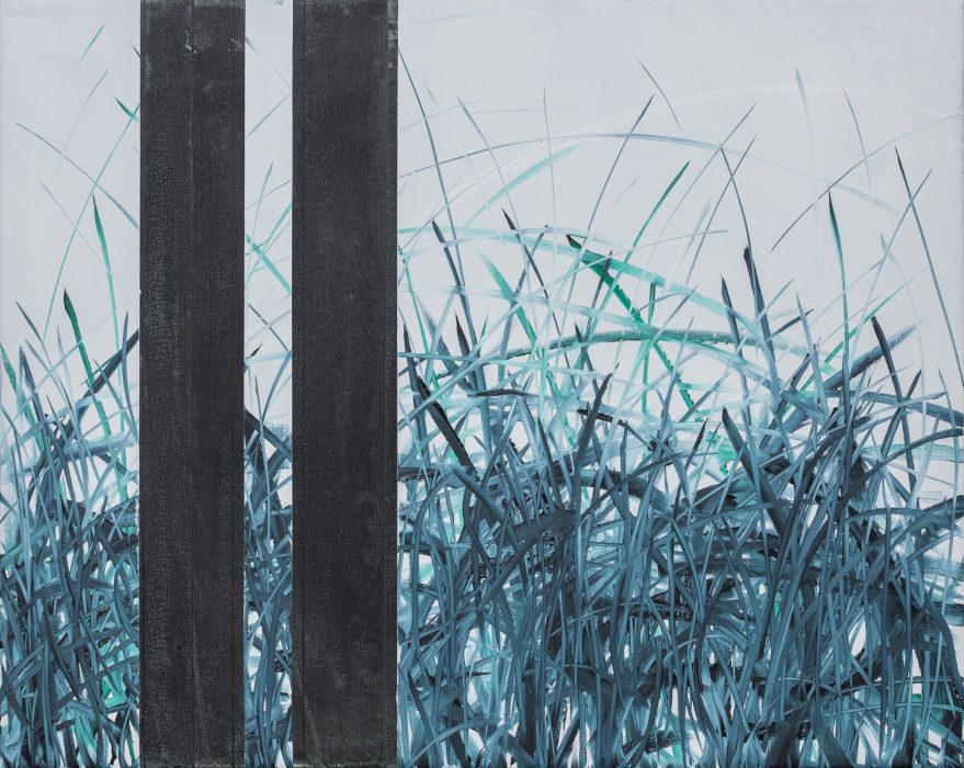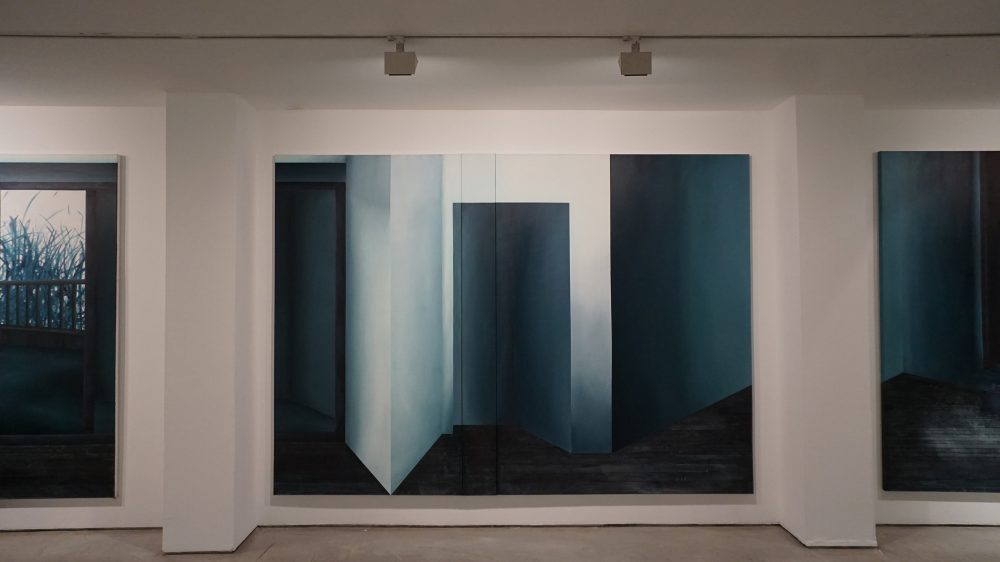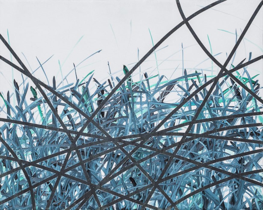 In the same way that when examined close up, a continuous line is exposed as a collection of adjacent points, the exhibition at Zemack reveals that the installation is a sequence of interconnected drawings. Breaking down this sequence allows the reexamination and redefinition of the boundaries of the space, of the separation that supposedly exists between the outside and the inside. The paintings now become open windows to the depicted reality and not, as coined by Leonardo da Vinci, a window to reality. Moreover, the exhibition at Zemack includes a series of eight new works depicting plants. Tal Golani relates to these works as windows, and signals to us, the viewers, that the next stage of her journey goes outside the boundaries of the scene being observed: to the outside, to the organic, to an environment that is seemingly not designed by a human hand. However, the plants painted by Golani do not grow wild in nature. They are painted into planters; a small architectural structure that is also a buffer, separator, and divider. This structure attempts to dictate a borderline, that the structure will be forced to negotiate when the plant grows, when the painting spreads beyond the meticulous design of its creator.