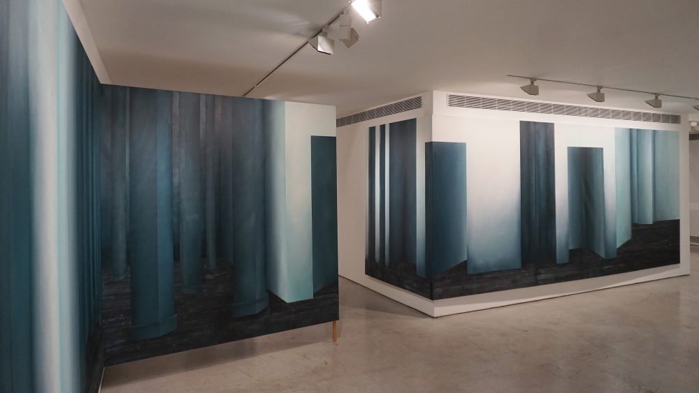 Tal Golani‘s first exhibition at the Zemack Contemporary Art marks a peak in the process of exploring the boundaries of architectural space. In previous works that she has exhibited, she rebuilt theaters, various sports fields, and playgrounds inside the white cube space. In her last exhibition, the “Sliding Door,” Golani wrapped the exhibition space with a duplication of itself and created an image of The Artists’ Residence in Herzliya with a 19-meter picturesque installation. Now, at Zemack, Golani combines the two practices that characterize and drive her process of creation: she has transferred one exhibition space into another.